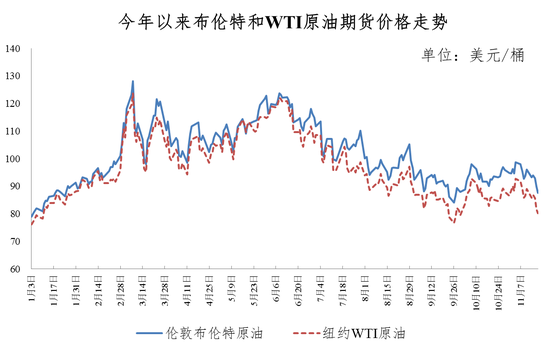 国家发改委价格监测中心预计,短期内油价可能震荡运行。一方面因产油国减产、俄罗斯原油出口受制裁,原油供应偏紧的局面仍未有明显改善。另一方面发达经济体为缓解通胀压力采取的紧缩货币政策仍将对全球经济及原油需求增长造成损伤,进而对油价造成压制。“欧佩克+”当前的减产政策将于年底到期,后续需关注其12月月度会议对明年生产政策的决议。