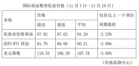 根据国家发改委消息,新一轮成品油调价窗口将于今天(11月21日)24时开启。据国家发改委价格监测中心监测,本轮成品油调价周期内(11月7日—11月18日)国际油价震荡下降。平均来看,伦敦布伦特、纽约WTI油价比上轮调价周期下降2.16%。